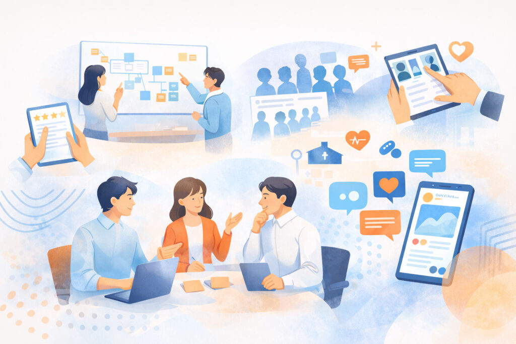 ・戦略づくりから具体的な施策検討まで、患者さんの声を軸に考えるプロセスをご一緒しています。